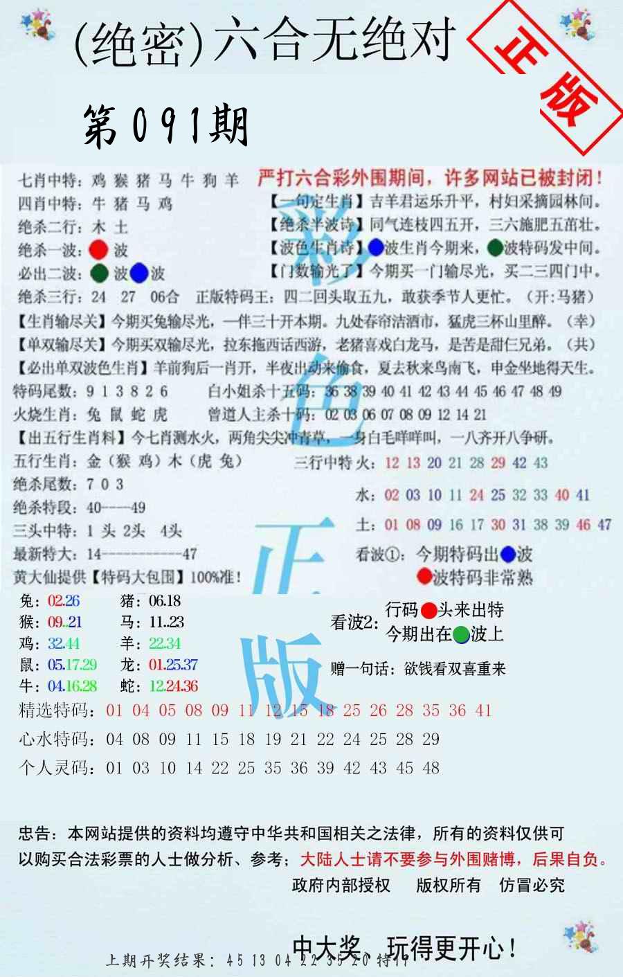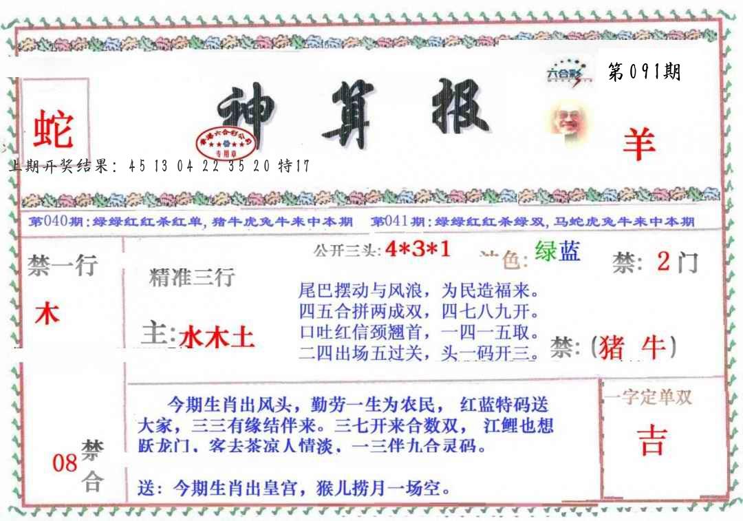 | 091期:五肖 |