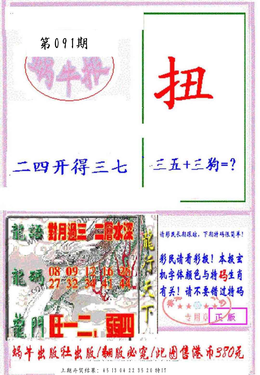| 091期 | 马鼠鸡牛羊兔龙 | ????? |